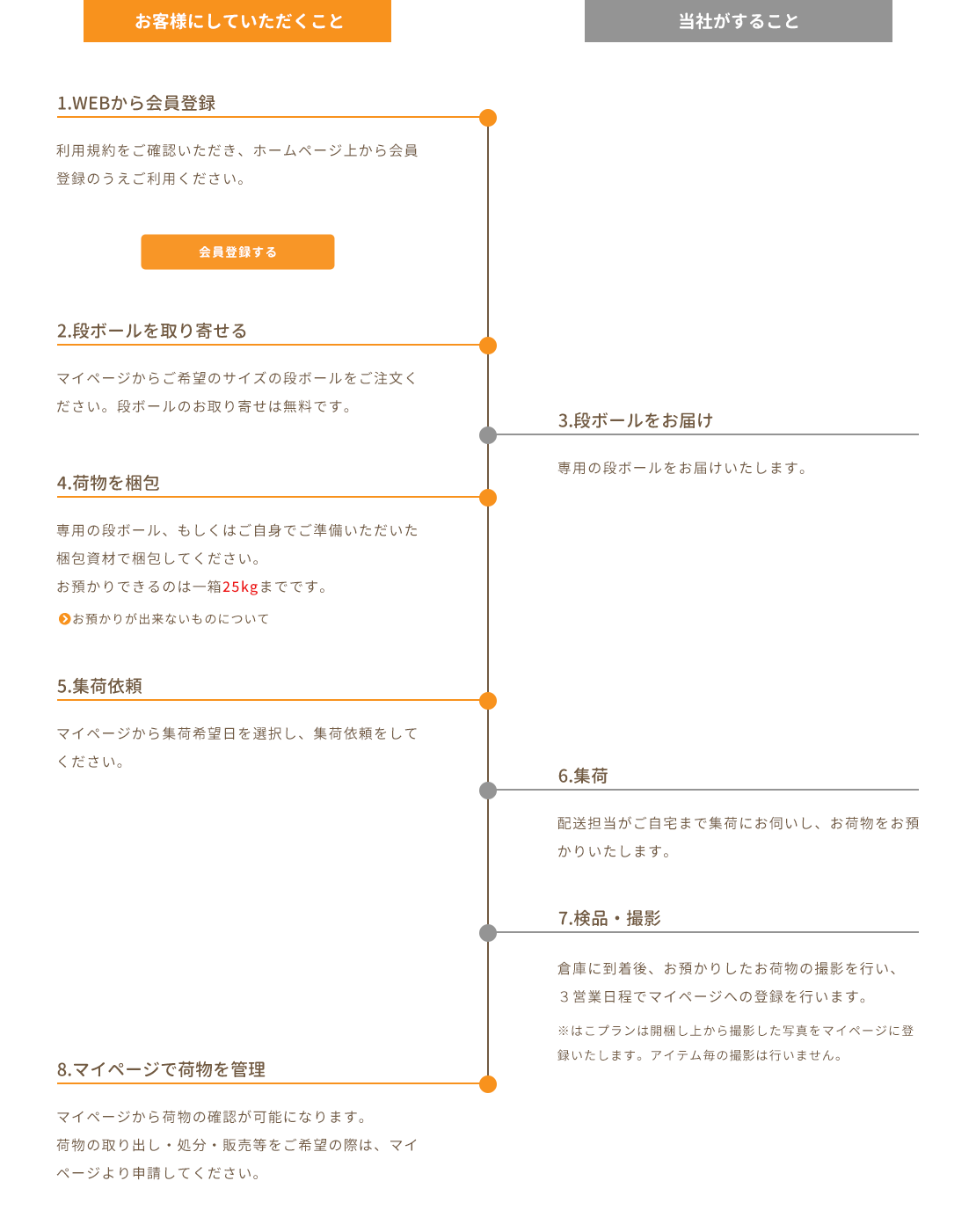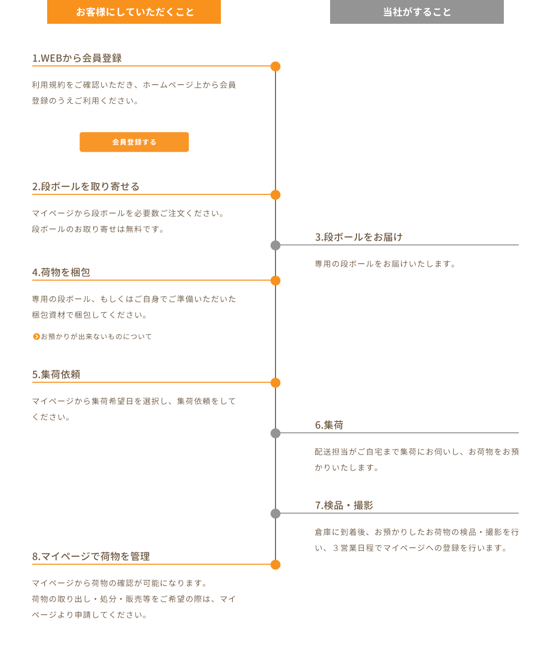 お預かりした荷物は検品・撮影を行い、お客様のマイページに登録するため、お預けいただいたお荷物をマイページで確認していただけます。