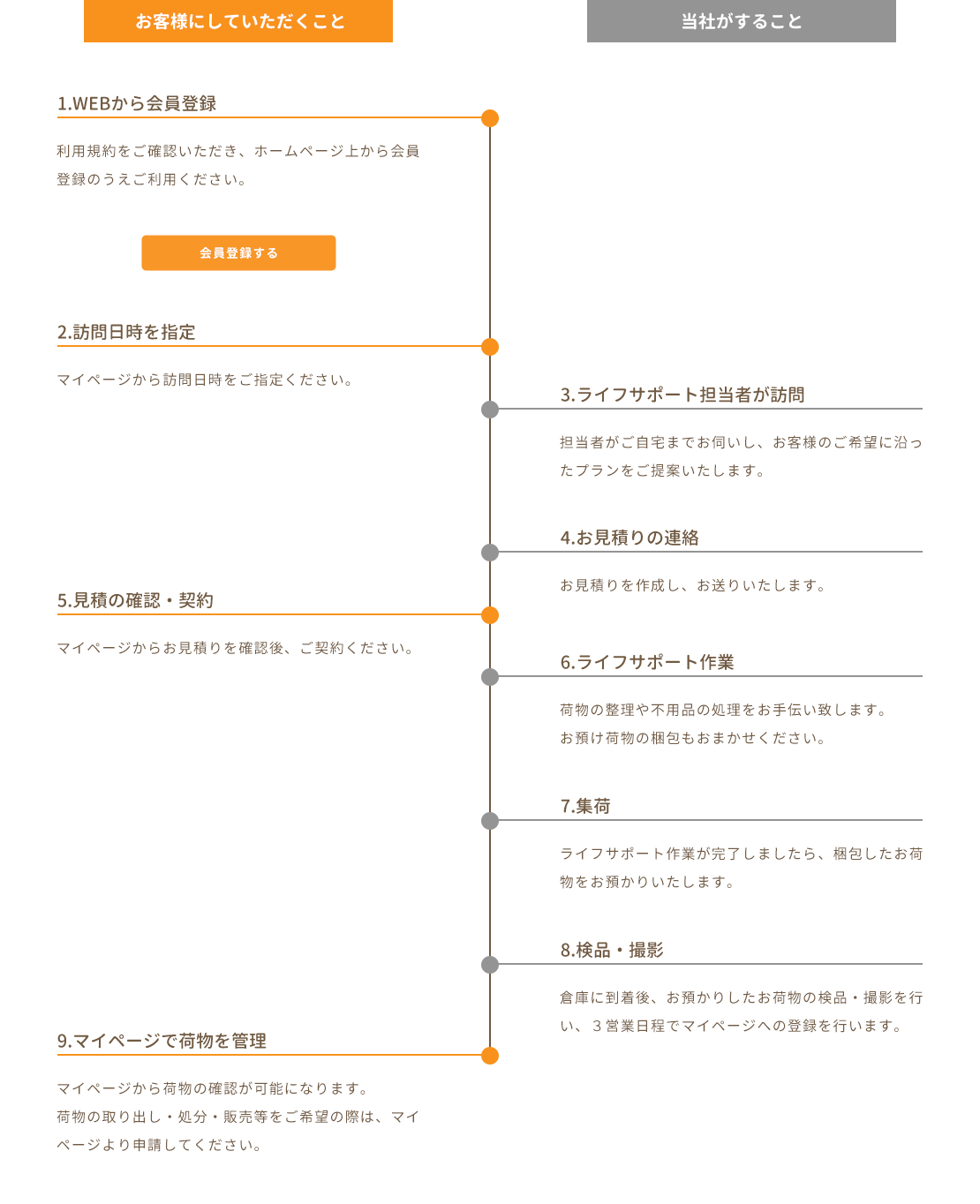 Miyamaコーポレーションのライフサポート事業と連携して、高齢者の方が抱えるお荷物の悩みを解決。専門のスタッフが直接自宅にお伺いするので、お気軽にご相談いただけます。(※おまかせプランのみ)
